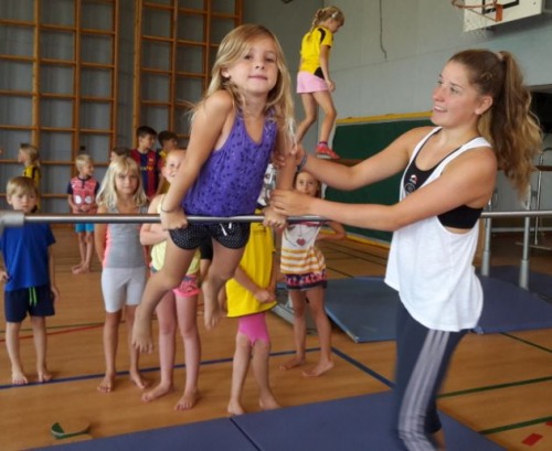 Unter der Leitung von Eva Hofer (ehemalige Turnerin, staatlich gepr. Turninstruktor und Volksschullehrerin) konnten die Kinder jeden Tag ein anderes Gerät bzw. neue Elemente aus dem Turnsport erlernen. Handstand, Hüftaufschwung am Reck und auch Salto sowie FlickFlack standen am Programm.