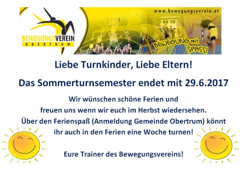 am Donnerstag, 29. Juni findet, vor der Sommerpause, das letzte Mal ein Turntraining statt.