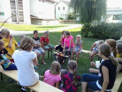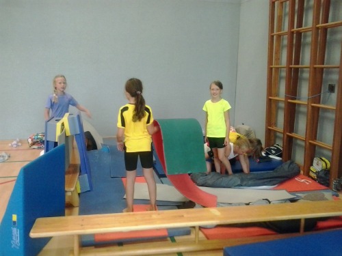 Highlight und somit Abschluss der Turnwoche war die SLEEP OVER Party im Turnsaal. Hier gab es noch einmal Unterstützung von Eveline und Bernd Kriechhammer um die 23 Kinder "zu bändigen". Würstel grillen im Vorhof, lustige Staffelspiele im Turnsaal, Zähne Putzen am See und das "Einrichten" der jeweiligen Schlafplätze, die sehr kreativ gestaltet wurden standen am Programm.