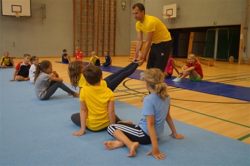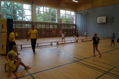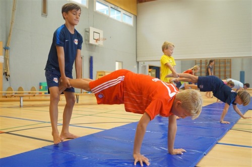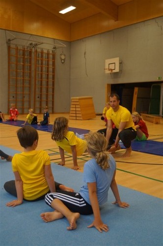 40 Kinder, 2 Trainer, 2 Helfer und gaaaaaanz viel Salto, FlickFlack, and more.