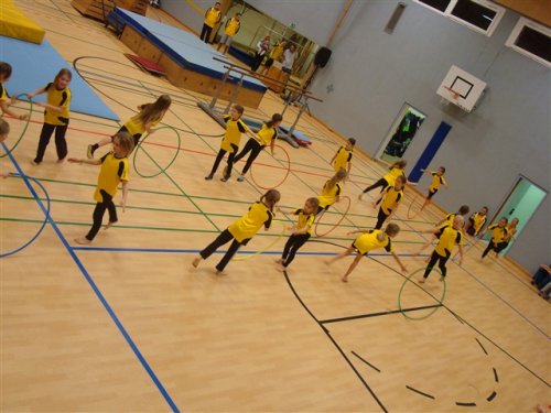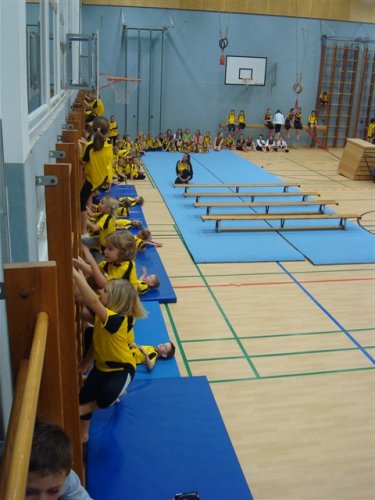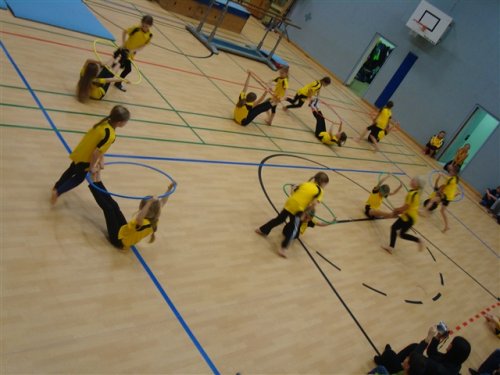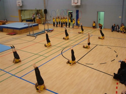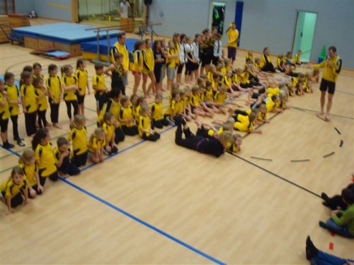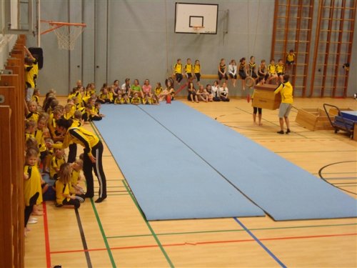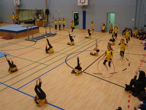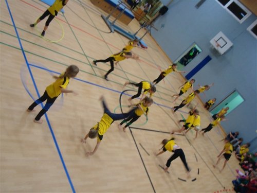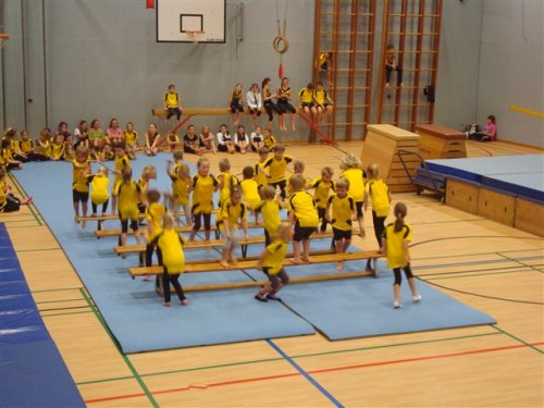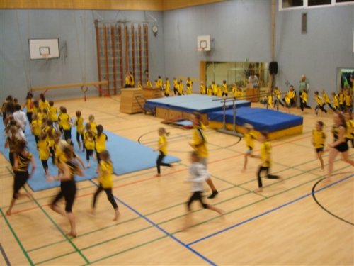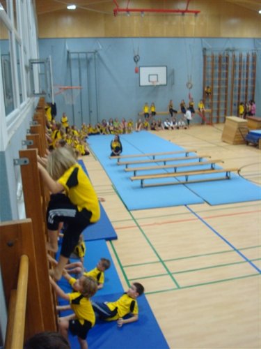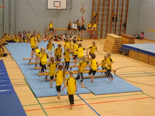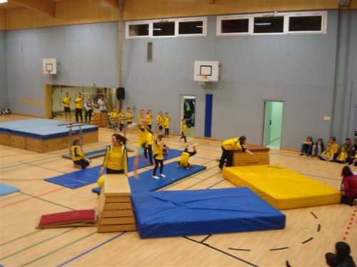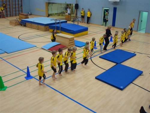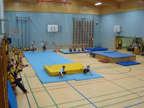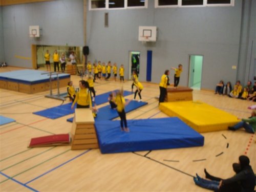 120 Kinder zeigten in unterschiedlichen Gruppen ihr Können. Geturnt wurde am Boden, mit den Reifen, am Barren, mit den Ringen, am Balken, und über den Kasten. Die rund 300 Zuschauer applaudierten begeistert. Zum Abschluß bekamen alle Kinder eine kleine Überraschung vom Christkind.