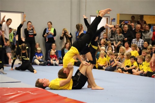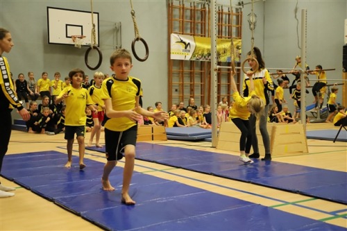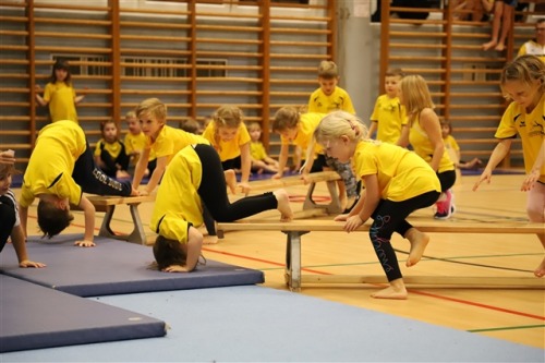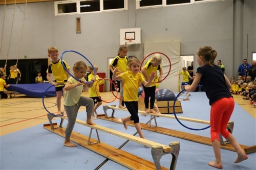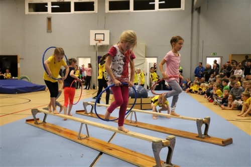 Geturnt wurde am Boden, am Balken, über die Kästen, an der Sprossenwand, über Bänke und Taue, am Reck, am Trampolin und sogar hinter einer Leinwand (Schattenturnen).