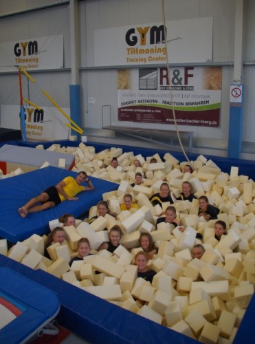 Bei täglich 2 Trainingseinheiten wurde in der perfekt ausgestatteten Turnhalle an Saltos, Flickflack, Überschlägen und Schrauben gearbeitet. Ein besonders Highlight vor Ort war natürlich die "Schnitzelgrube", in der neu gelernte Elemente gefahrenlos geübt werden können, da man in einem riesigen Berg aus Schaumstoffschnitzeln landet.